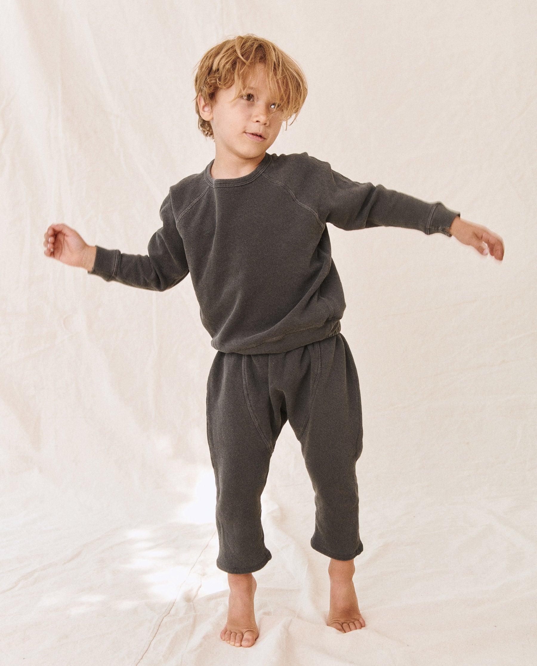 A little version of our beloved College Sweatshirt. Based on our favorite vintage sweatshirt body, this wardrobe staple features a lived-in vintage wash and signature slit on the left cuff. Made from a double washed terry, this relaxed sweatshirt also has the softest hand! Our knits are crafted in Los Angeles, ensuring authenticity, beauty and uniqueness in that no two pieces are alike.