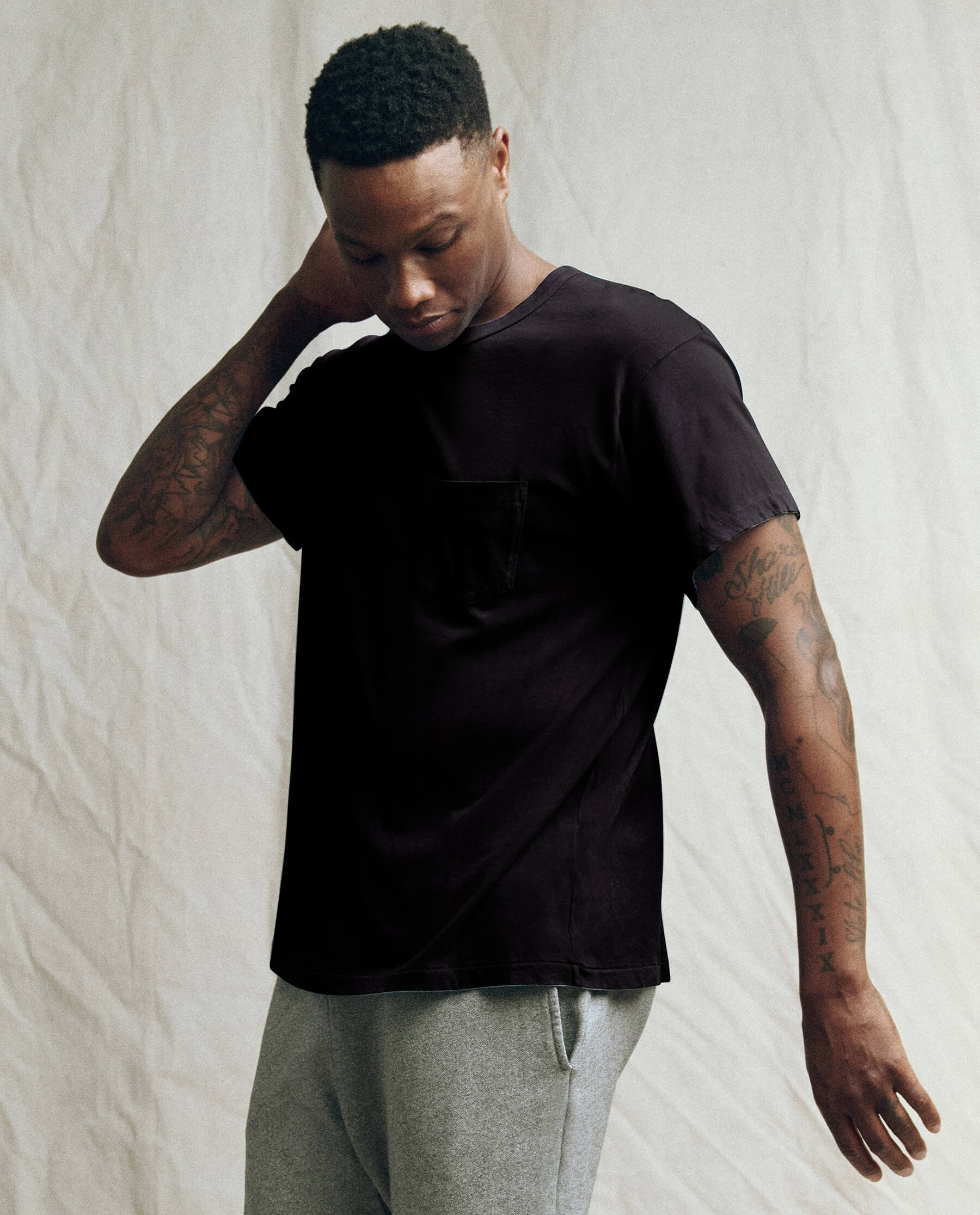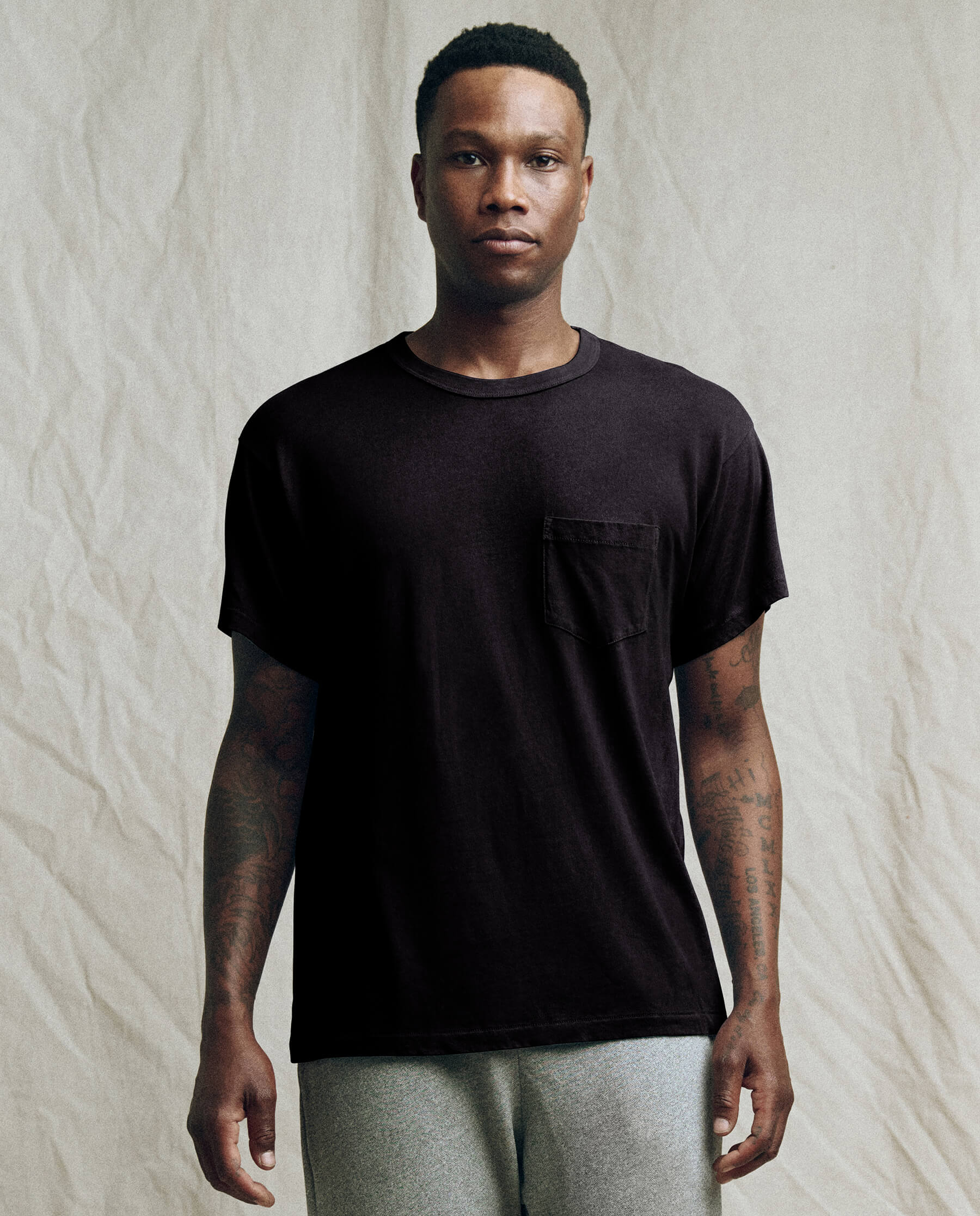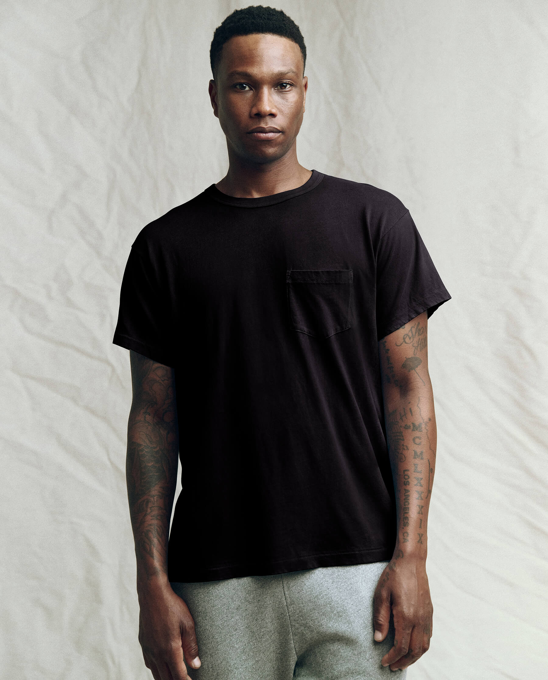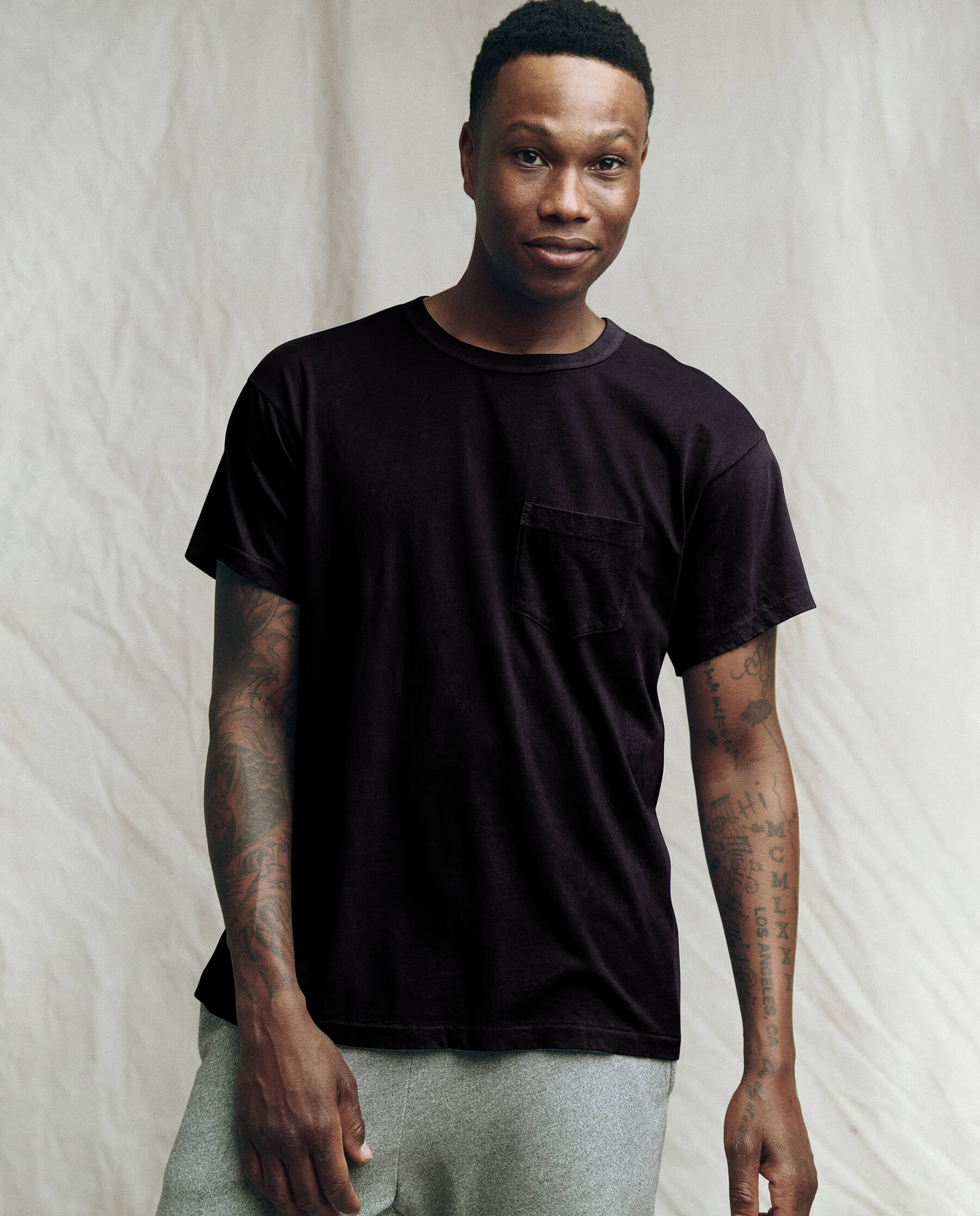 The Men’s Pocket Tee. is the latest fit in your lineup of essentials. This supersoft, washed-and-worn basic fits generously through the body with a pocket detail that naturally torques like your favorite vintage tee. Handcrafted locally in L.A., this tee is designed to get (even) more character with age and wear.