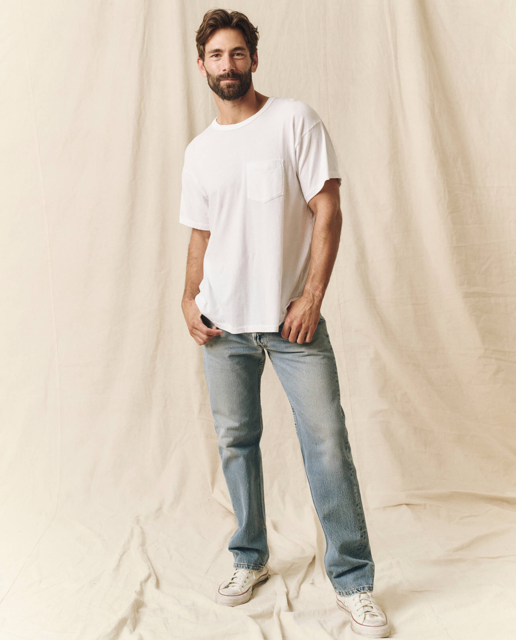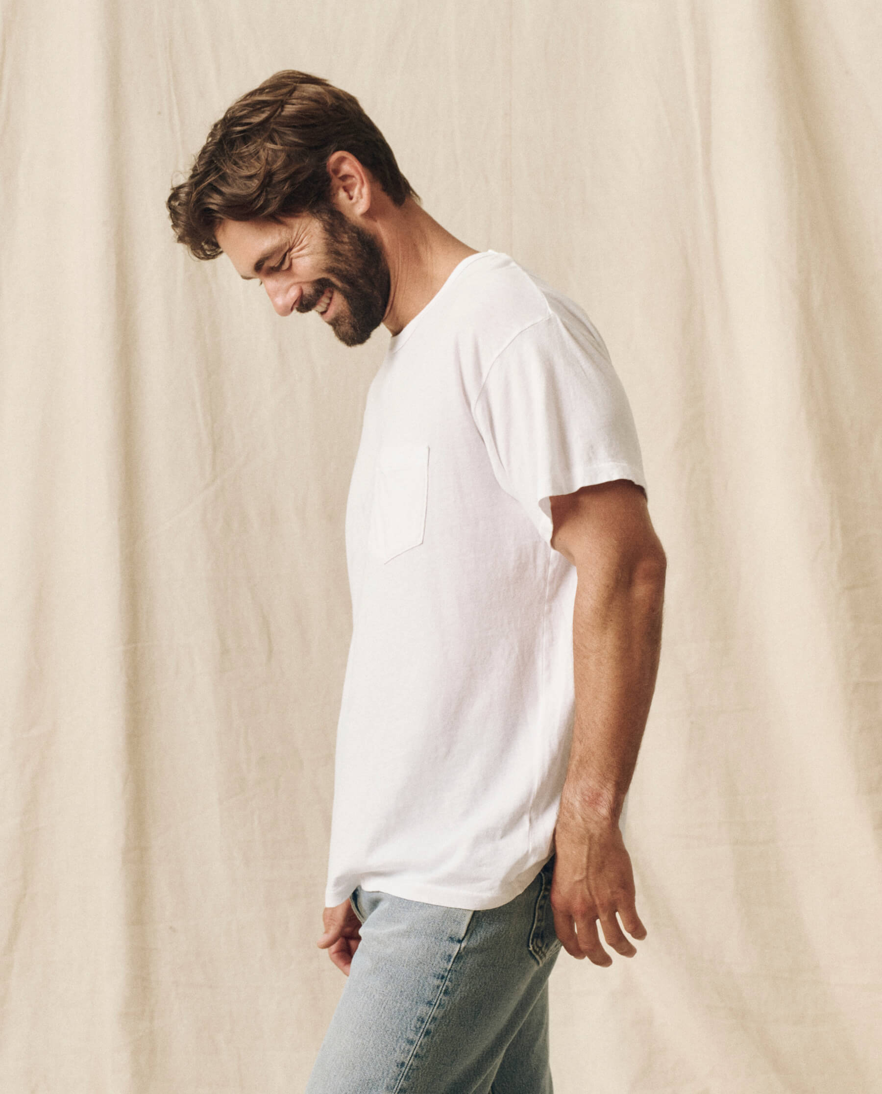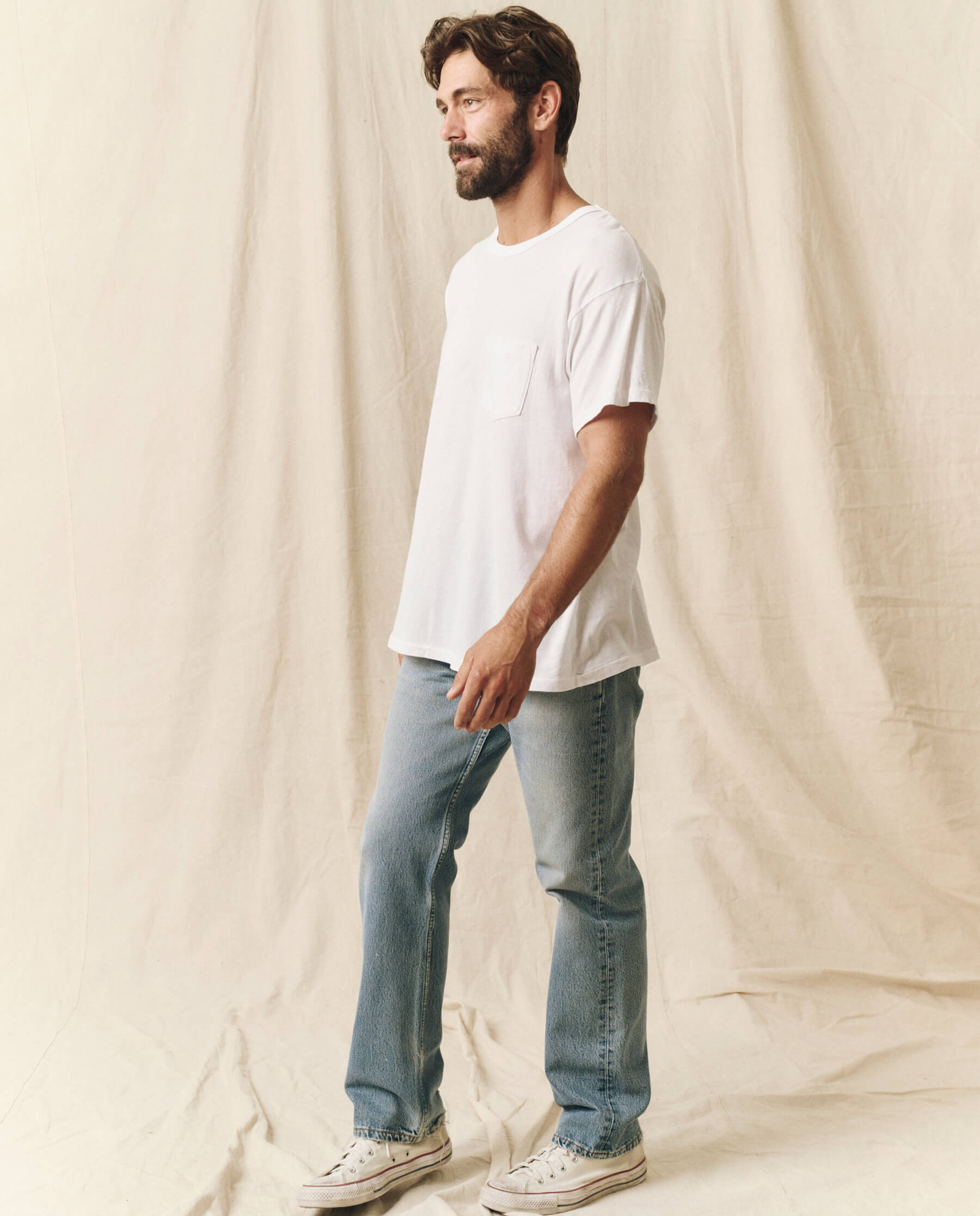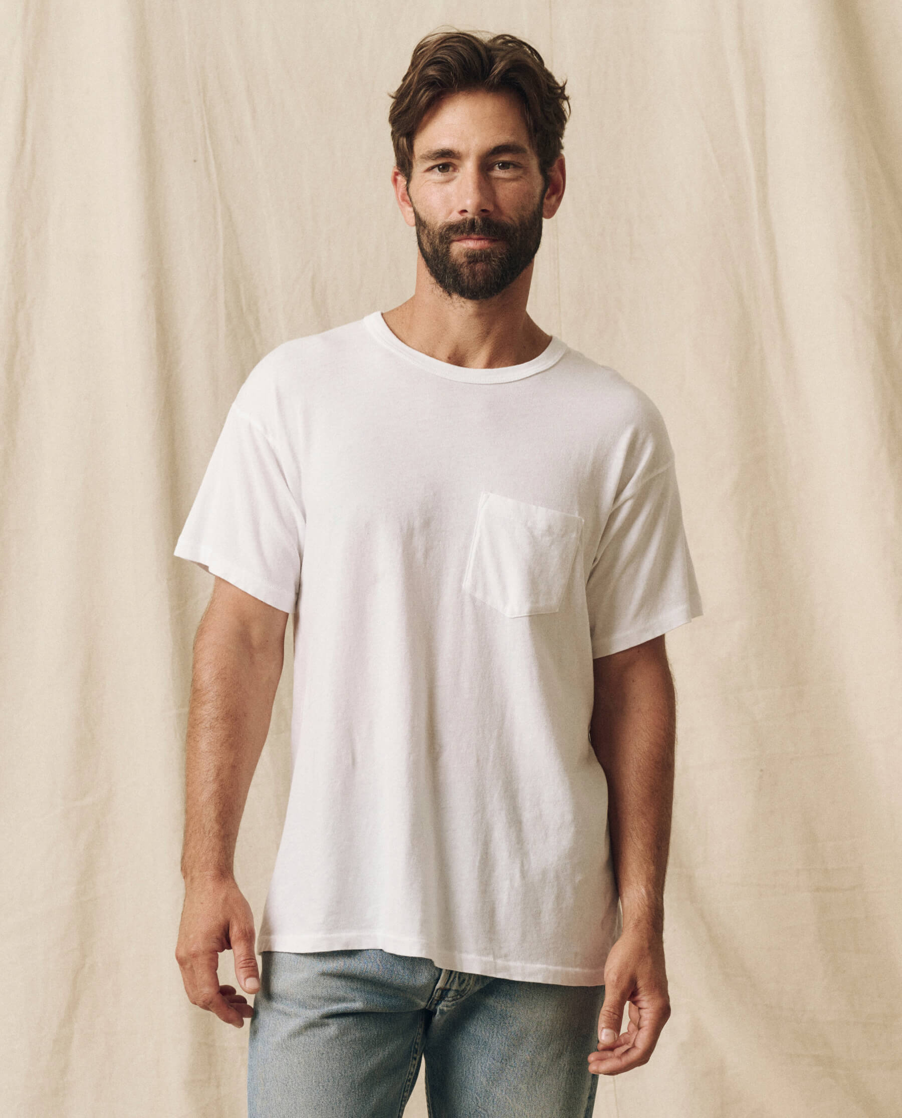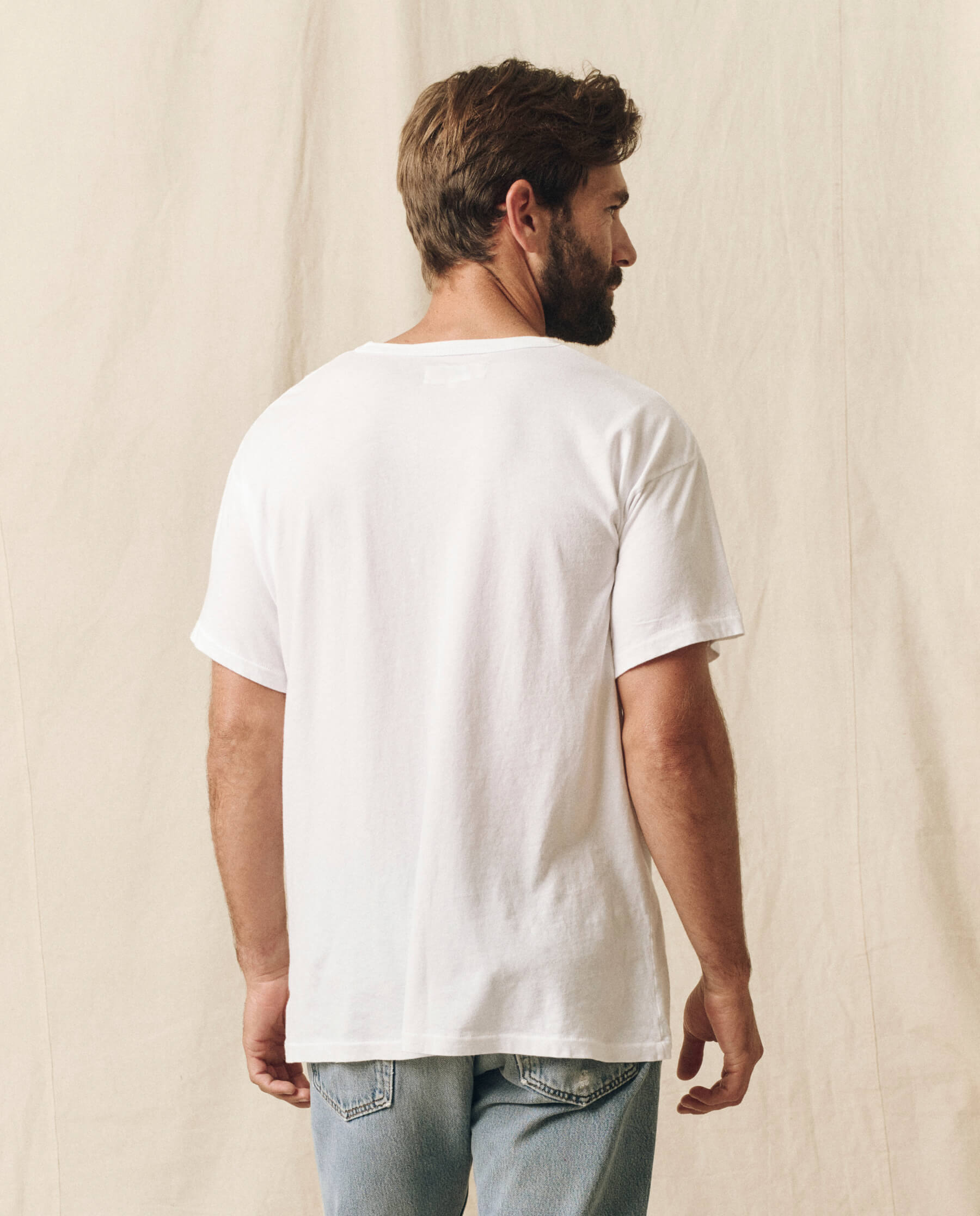 The Men’s Pocket Tee. is the latest fit in your lineup of essentials. This supersoft, washed-and-worn basic fits generously through the body with a pocket detail that naturally torques like your favorite vintage tee. Handcrafted locally in L.A., this tee is designed to get (even) more character with age and wear.