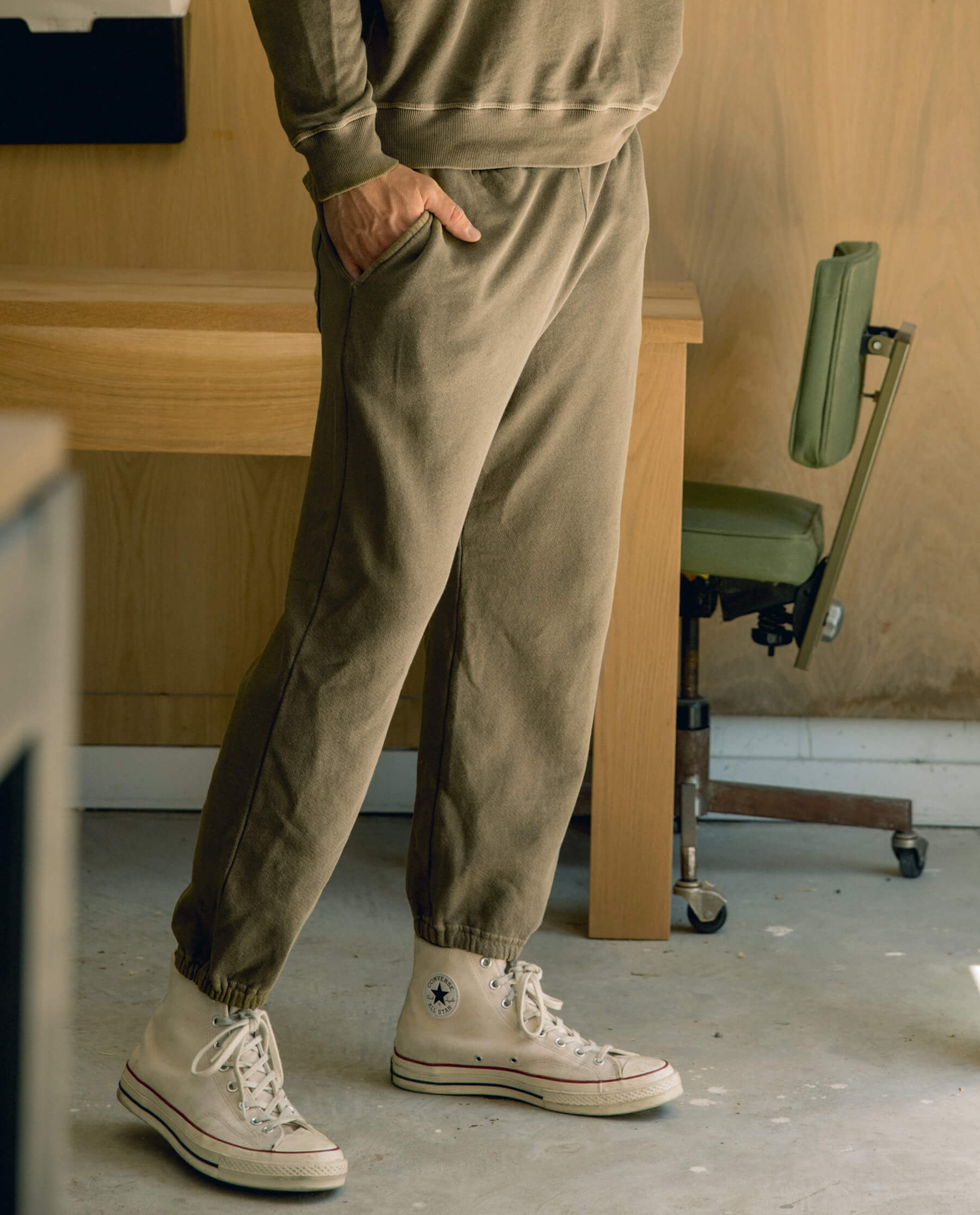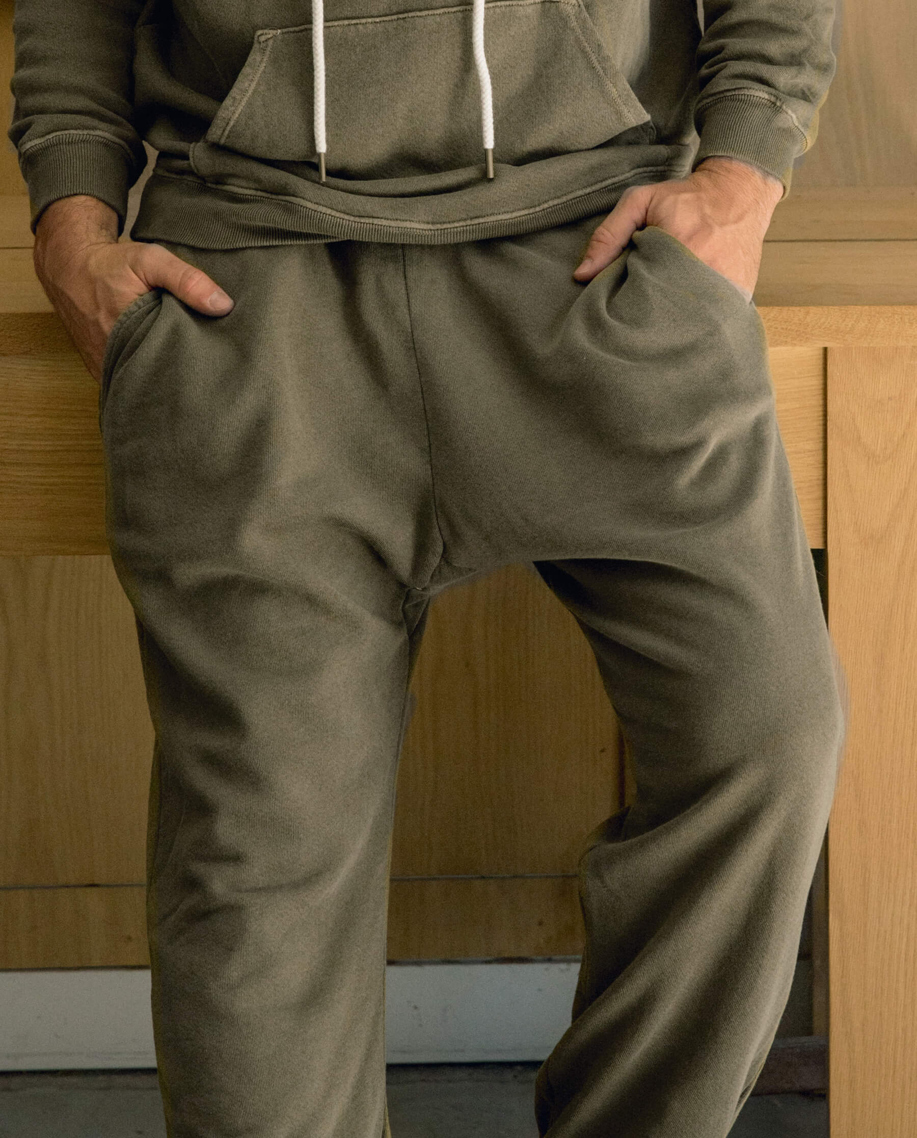 Inspired by vintage athleticwear, The Stadium Sweatpant. is a classic men’s bottom. Made of softly washed cotton, it features an elasticated waist with a hidden drawstring, elastic ankle cuffs, pockets on the side seam, and a patch pocket in back. Crafted locally here in Los Angeles, our process ensures the authenticity and uniqueness of every piece that will develop (even) more character with wear.