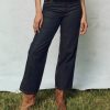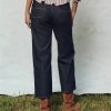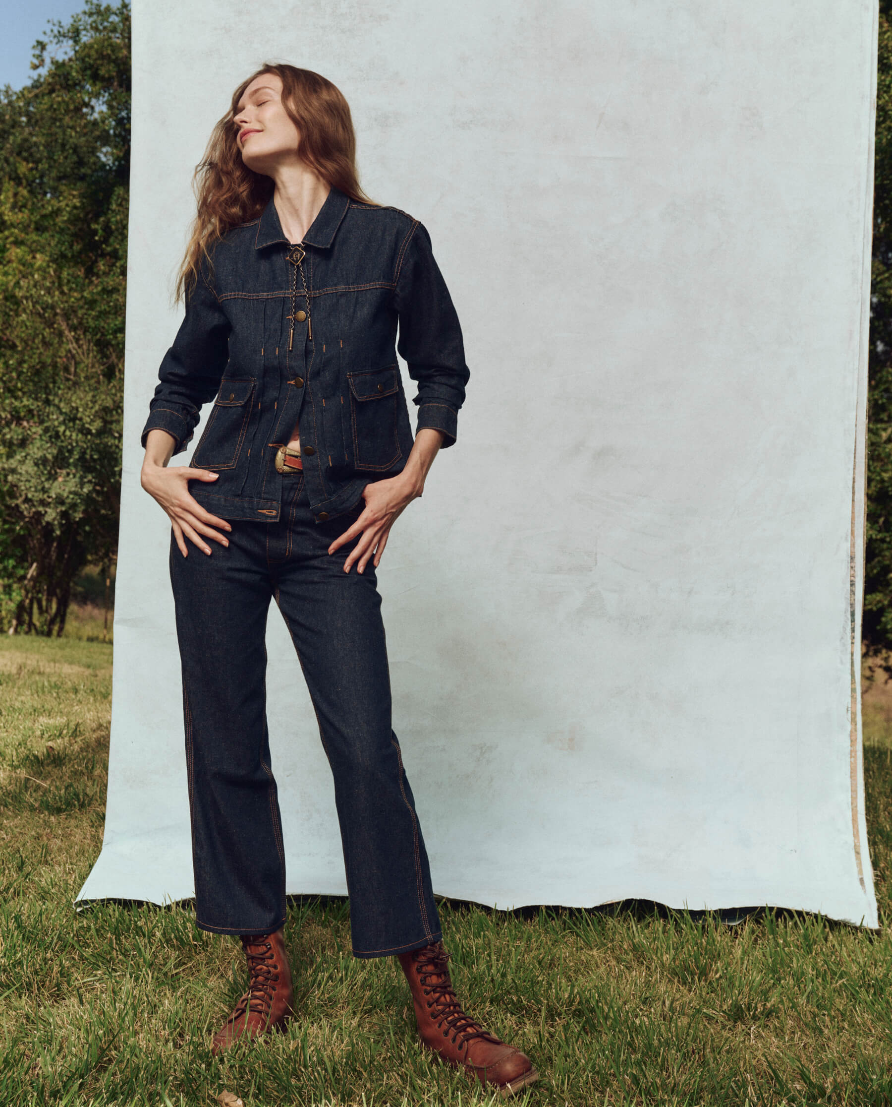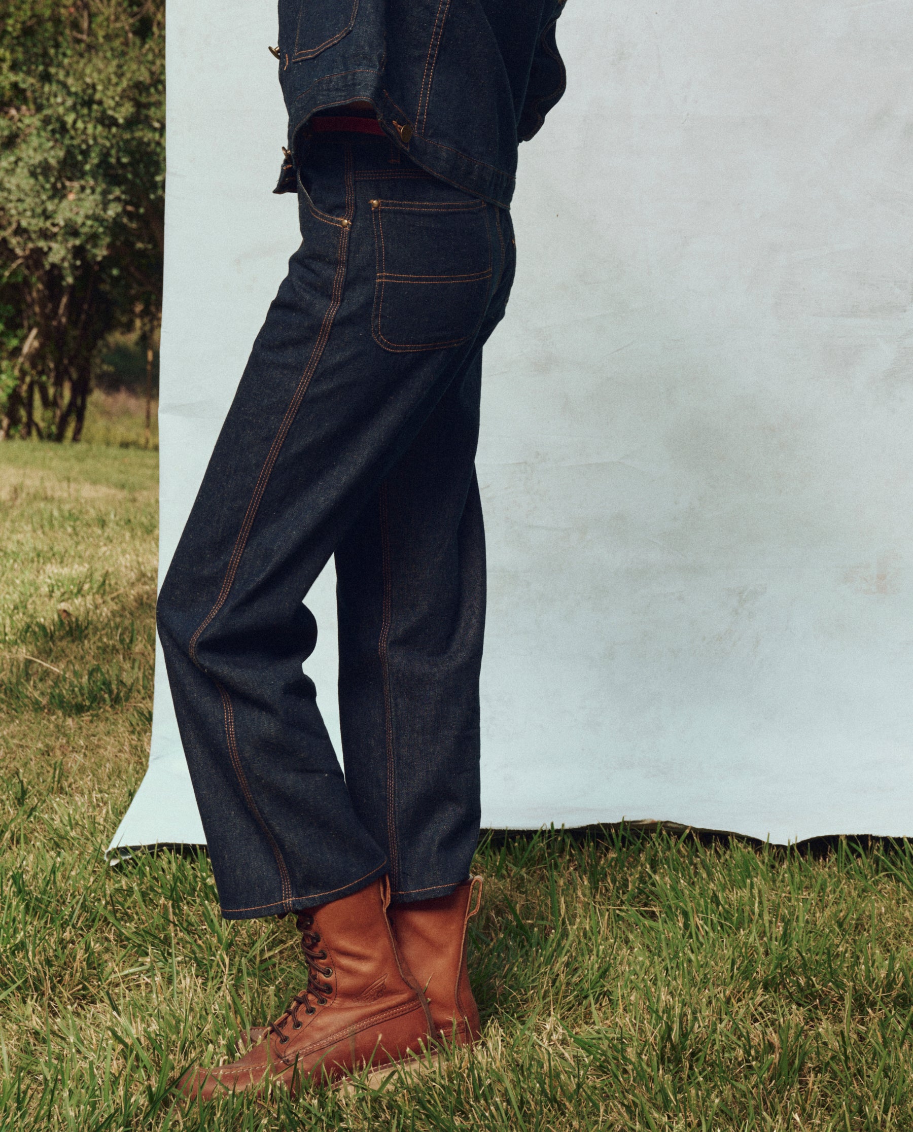 Inspired by men's workwear jeans from the 1930s to the 1950s, this piece draws on the authenticity of classic workwear with details like triple-needle stitching at the side seams. It features classic 5-pocket styling, a square top block, and a straight-leg shape for a clean fit, with a cropped inseam. This jean can be worn true to size and higher rise or size up for a more relaxed lower rise fit. The pants are secured with a tack button closure at the waistband and crafted in our Cotton Hemp Denim in dark Rinse wash. This jean is slightly smaller and more cropped than The Workwear Jean.