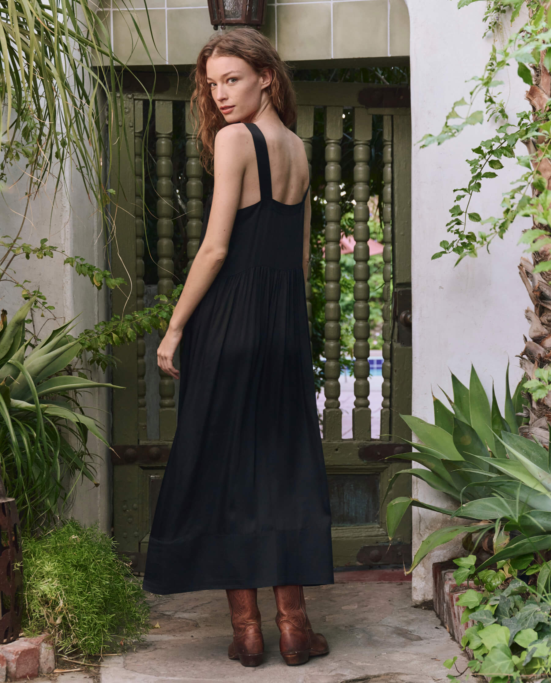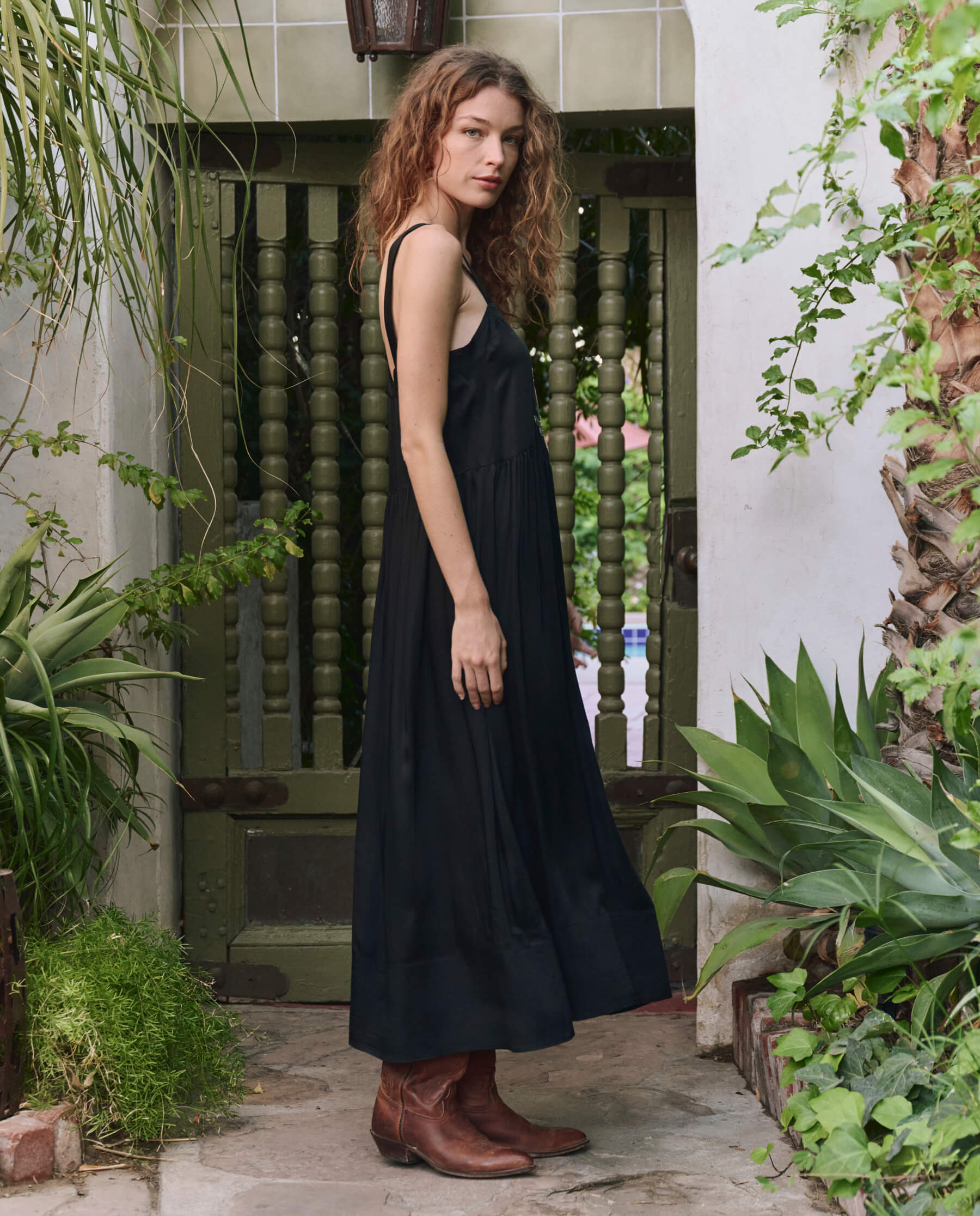 Perfect for sun-filled days and effortless elegance, The Day Dress features an easy sundress silhouette with a square-cut top block and a waist seam delicately shirred for a soft, feminine fit. Cut from a soft, silky viscose fabric that drapes beautifully over the body, this dress is as flattering as it is comfortable. Adjustable wide straps and a neckline with trapunto stitching offer a thoughtful touch of detail, while the wide hem band adds a hint of structure. Adorned with bouquet floral embroidery, this dress combines both romance and ease.