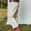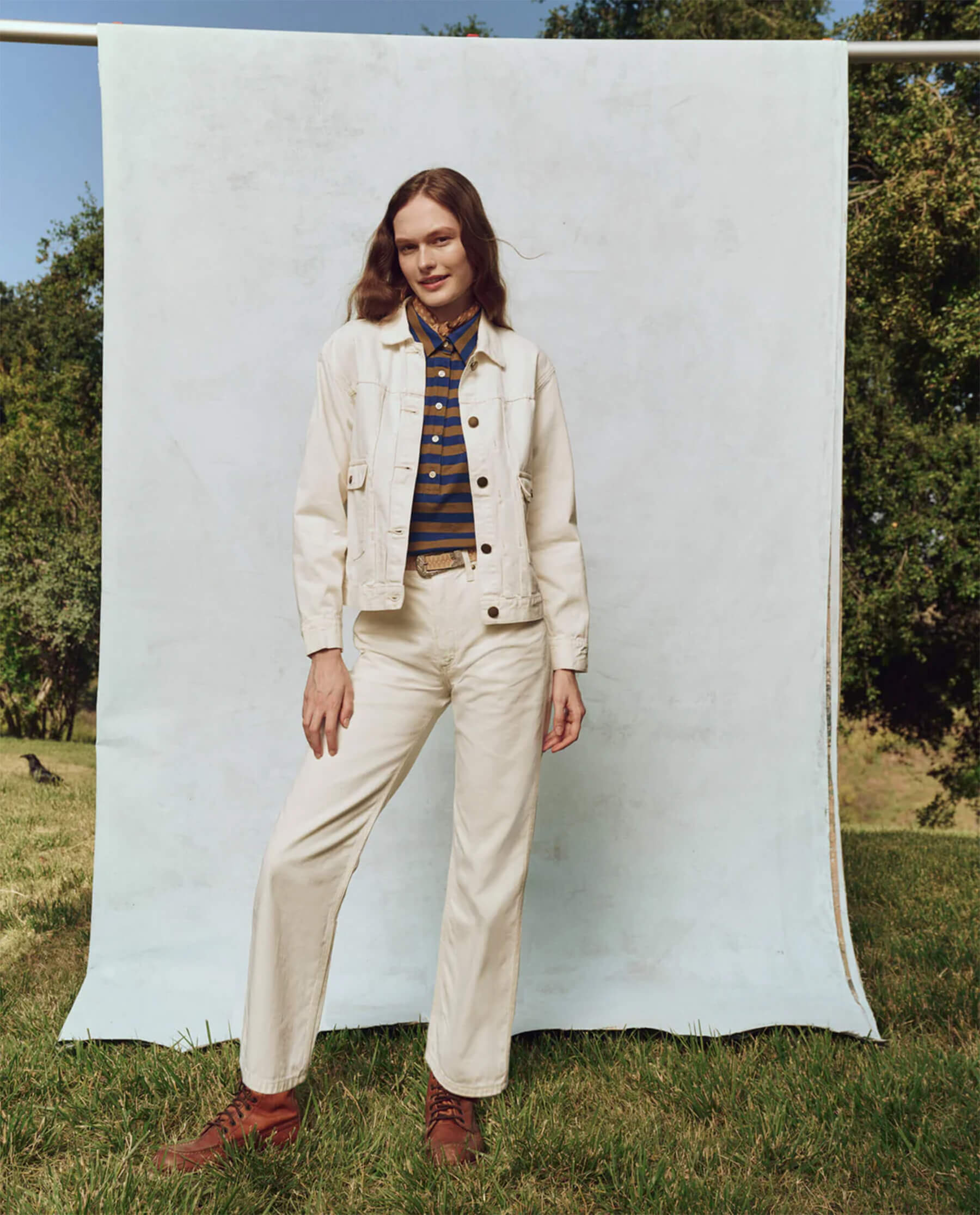 Inspired by men's workwear jeans from the 1930s to the 1950s, this piece draws on the authenticity of classic workwear with details like triple-needle stitching at the side seams. It features classic 5-pocket styling, a square top block, and a straight-leg shape for a classic fit, with an ankle inseam. This jean can be worn true to size and higher rise or size up for a more relaxed lower rise fit. The pants are secured with a tack button closure at the waistband crafted in a Natural shade of our Cotton Hemp. This jean is slightly more relaxed and longer than The Cropped Workwear Jean.