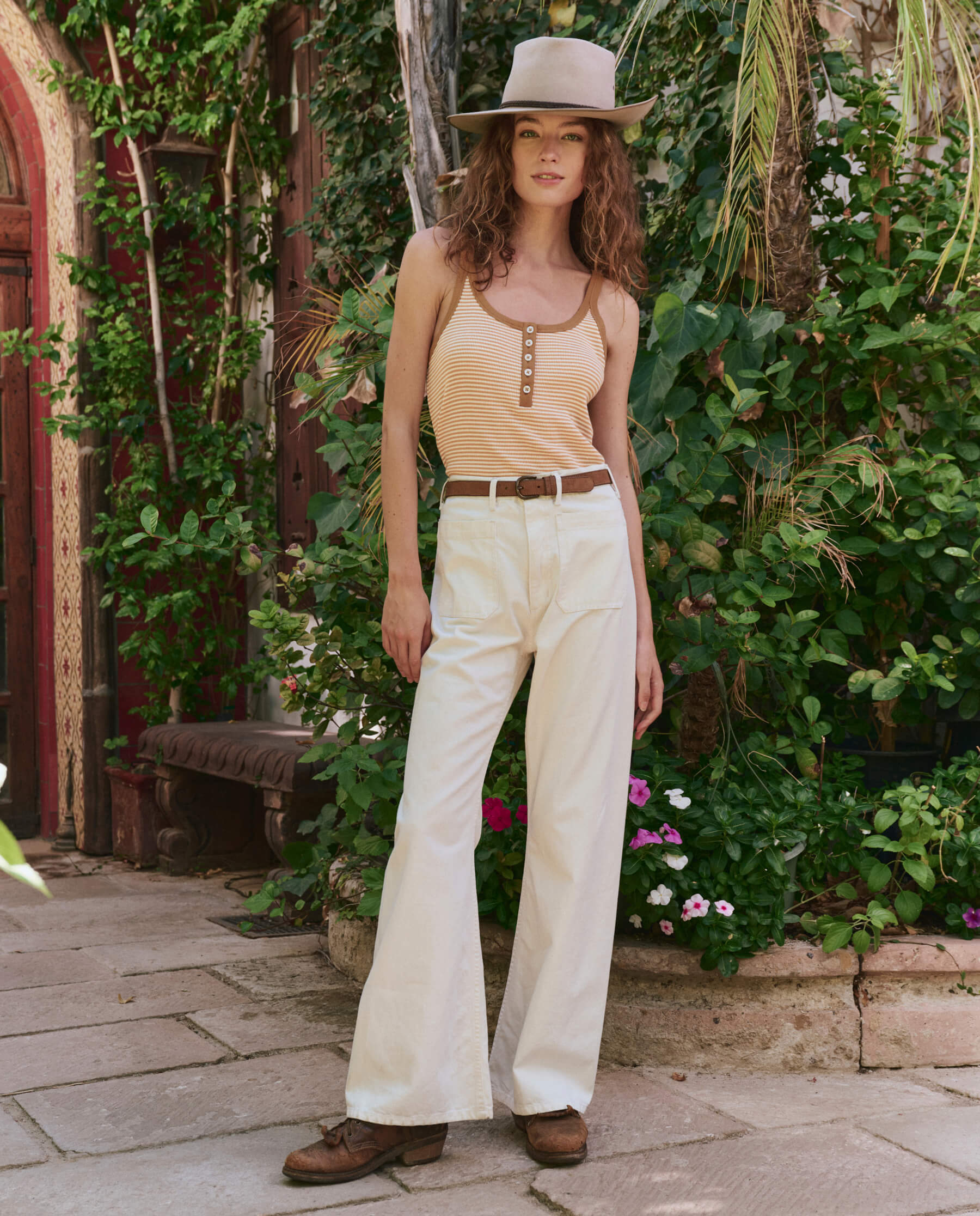 THE GREAT. Women’s Tees & Sweats The Henley Slim Tank. | Bronze Stripe