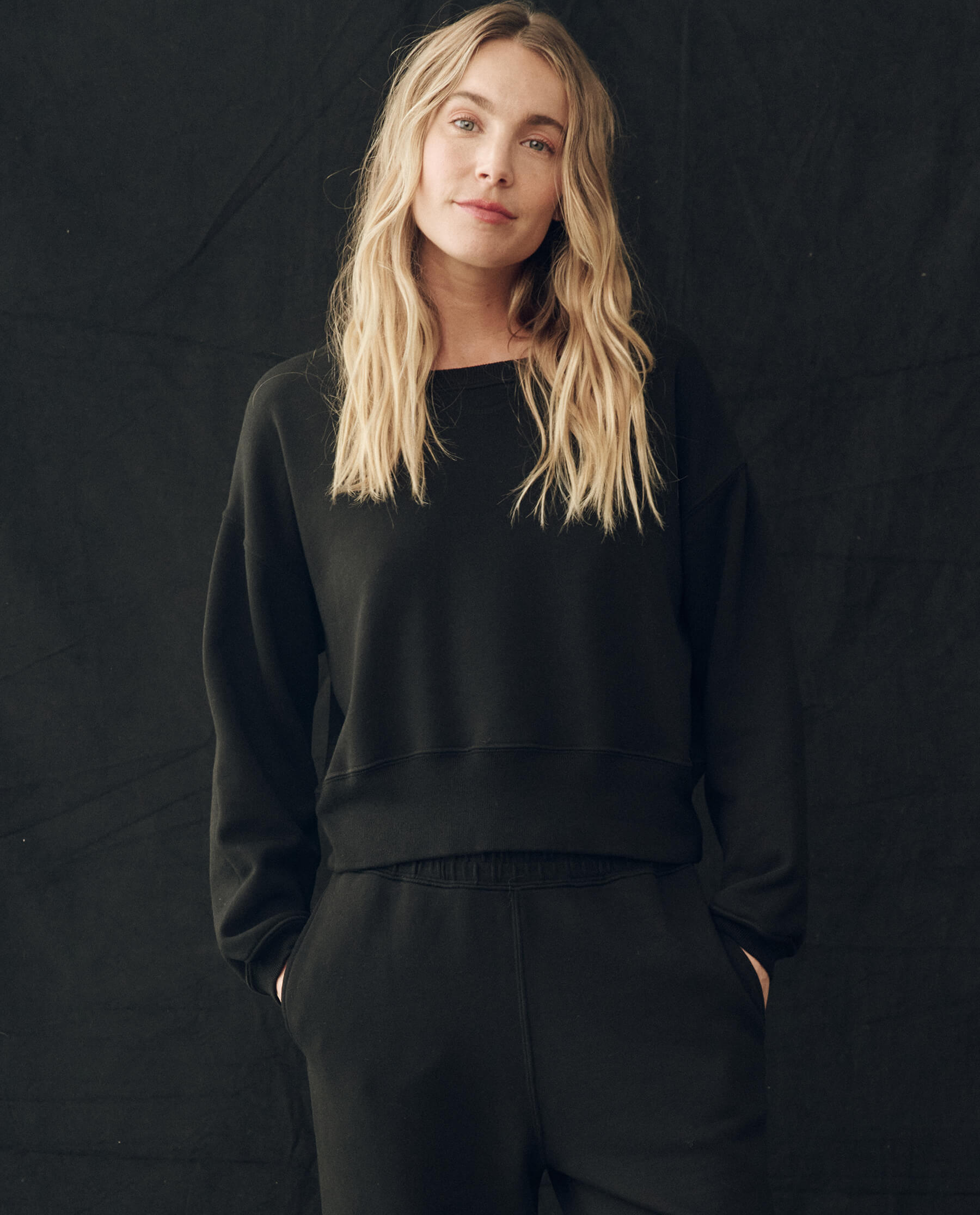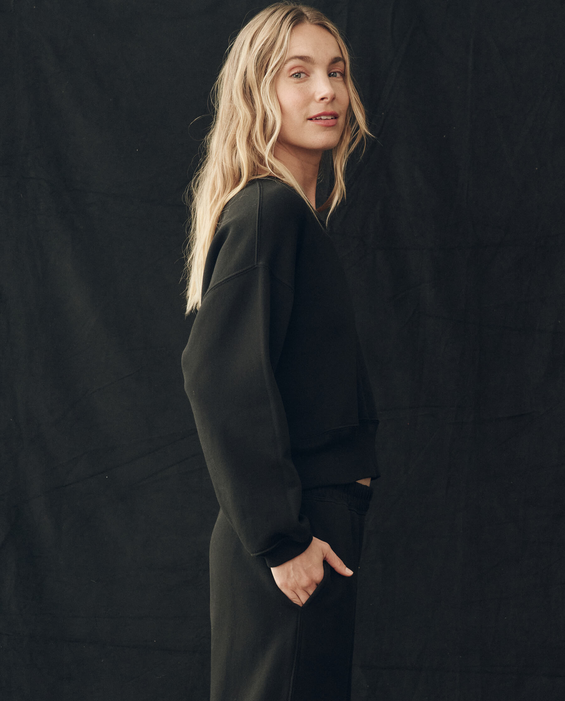 A closet MVP, The League Sweatshirt is a favorite addition to our collection. Made from a lofty loopback French Terry in pure and clean colors that resemble vintage athletic knits, it fits boxy and slightly cropped with an athletic inspired inset and a crew shaped neckline, dropped shoulder, and a cool wide hem band. Moon-shaped stitching at the neck and delicate blouson sleeves with ribbed cuffs define the piece. This sweatshirt features the brand’s signature soft and broken-down hand, reminiscent of our favorite vintage sweatshirts we’ve collected over the years. Handcrafted locally in Los Angeles., our process ensures beauty and uniqueness—no two pieces are alike.