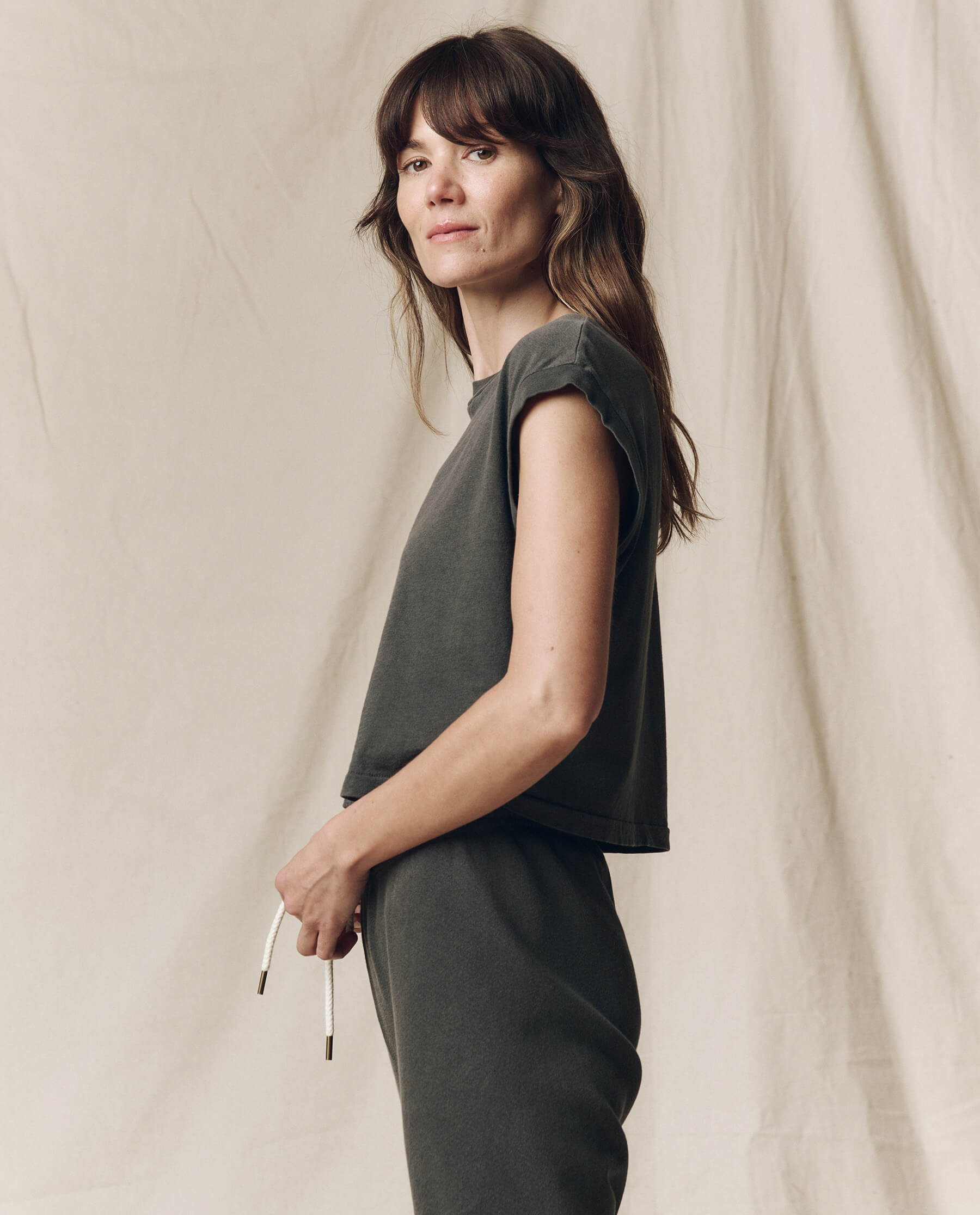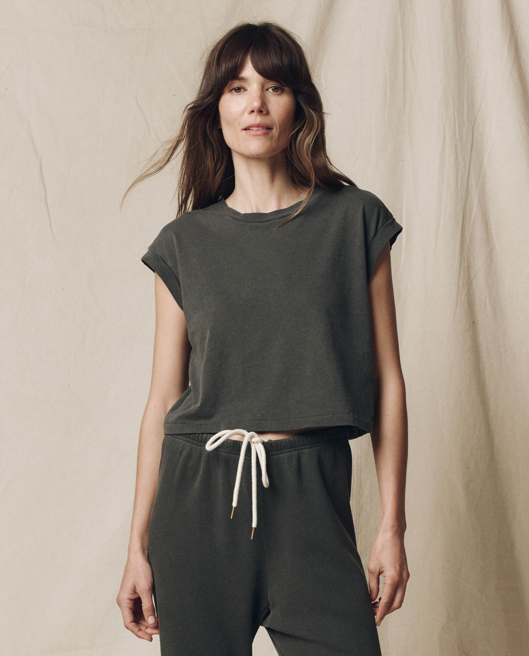 The Square Tee. is inspired by a vintage athletic tee we found while searching through bins at the flea market. It fits boxy through the body, has a square shape, and slightly cropped body length making it the perfect length to wear with high-waisted denim or trousers. Finishing touches include a crew neckline, clean hem, and soft rib at the neckline and armhole. Handcrafted locally in L.A., our process ensures beauty and uniqueness—no two pieces are alike.