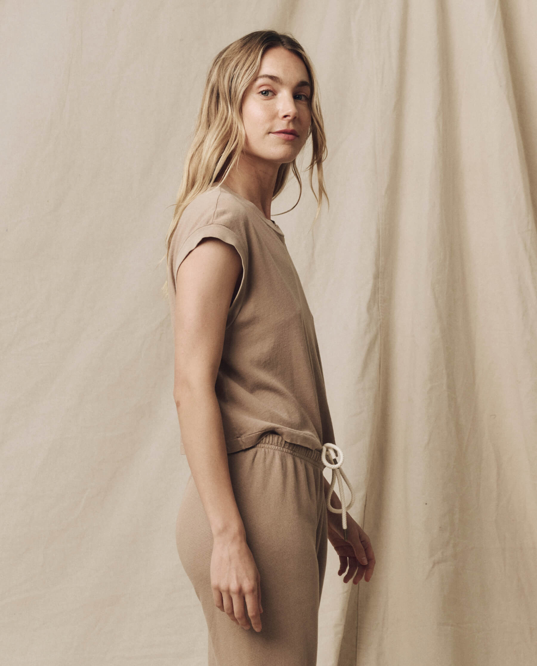 The Square Tee. is inspired by a vintage athletic tee we found while searching through bins at the flea market. It fits boxy through the body, has a square shape, and slightly cropped body length making it the perfect length to wear with high-waisted denim or trousers. Finishing touches include a crew neckline, clean hem, and soft rib at the neckline and armhole. Handcrafted locally in L.A., our process ensures beauty and uniqueness—no two pieces are alike.