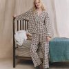 This sleep pant is crafted from the softest 100% cotton in the Medallion Print. It features a wide leg, slightly dropped rise, an elastic high waist and piped cuff. Wear them with its matching sleep top for mornings at home.