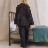 This sleep pant is crafted from the softest 100% cotton in the Medallion Print. It features a wide leg, slightly dropped rise, an elastic high waist and piped cuff. Wear them with its matching sleep top for mornings at home.
