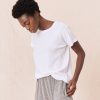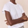 This perfect tee is a bit more narrow and a touch longer than our classic boxy crew. It is straight through the body and has all the softness and detailing of a timeless vintage tee. Handcrafted locally in Los Angeles, our process ensures beauty and uniqueness—no two pieces are alike.